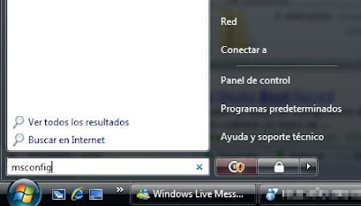 1) Solo tienes que ir al botón «Inicio» y escribir «msconfig» (Sin comillas)