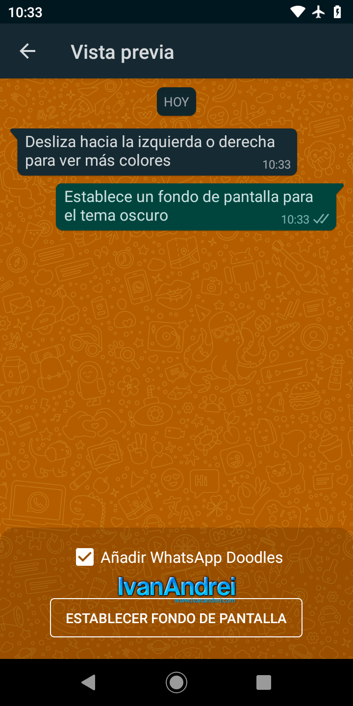 Son las caricaturas que están dibujados por defecto en un fondo de pantalla y se pueden ver cuando estás en una conversación escrita con un contacto de WhatsApp. Estas caricaturas solo estaban disponibles en un color sólido, pero con la nueva mejora puedes usar las mismas caricaturas con un color de fondo diferente.