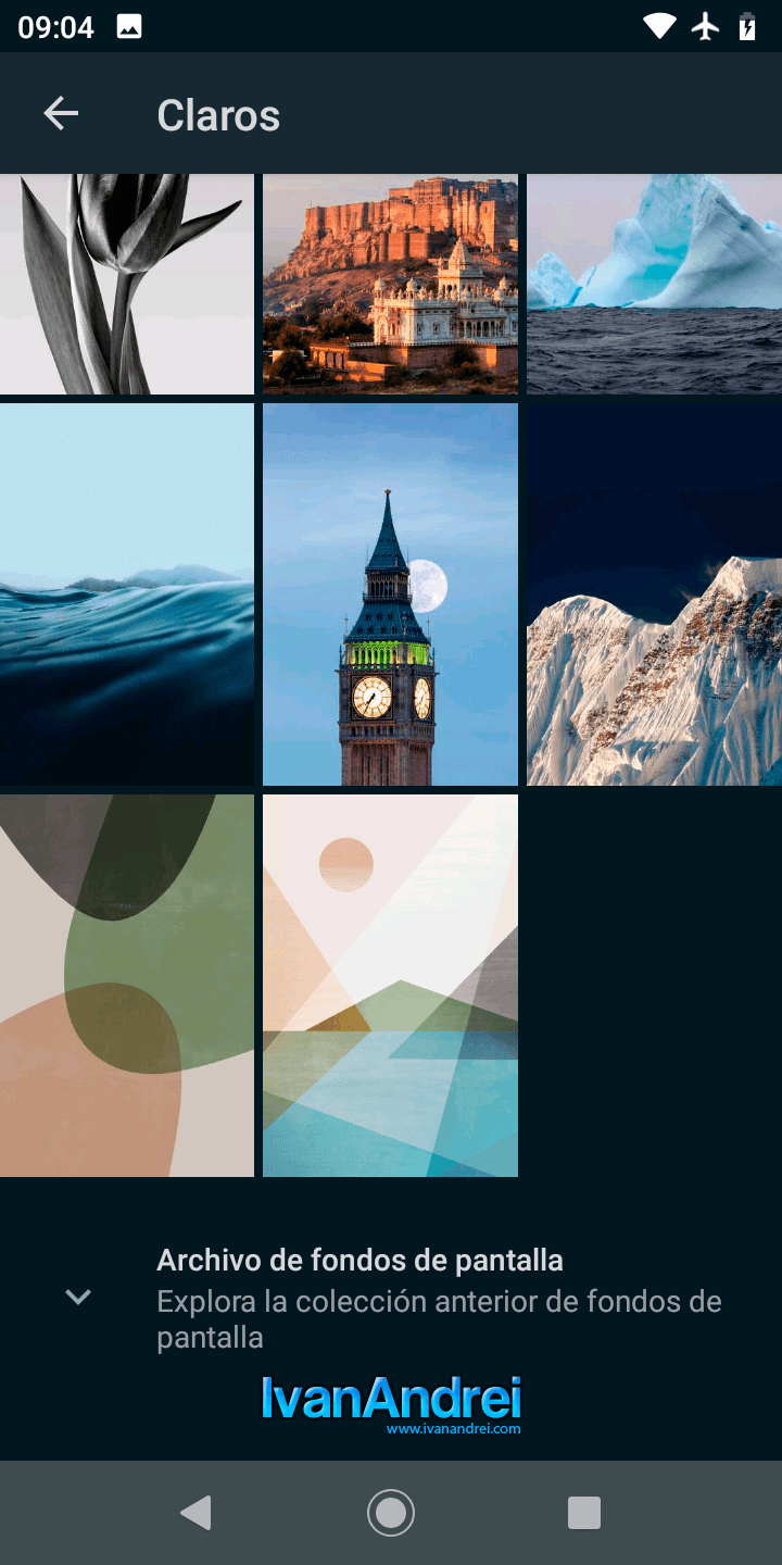 Debes seleccionar un fondo oscuro o claro y al final verás una opción llamada «Archivo de fondos de pantalla».