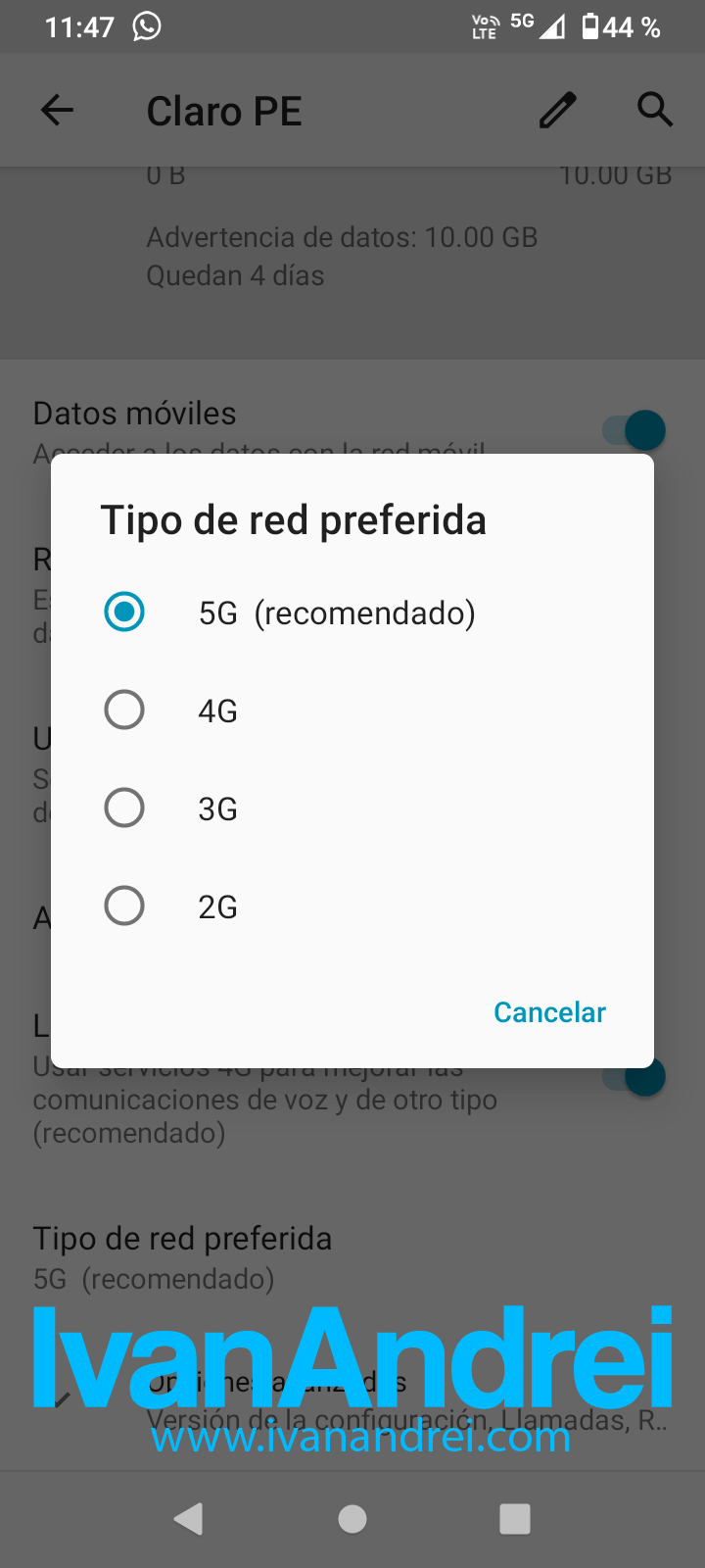 5. Verifica que esté seleccionada la red «5G (Recomendado)».